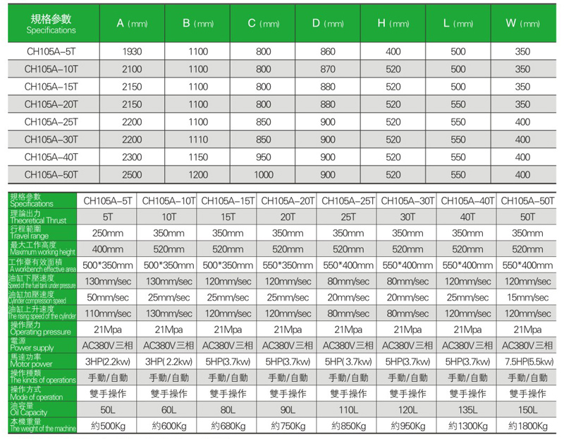 1: 本机采用四柱三板式开放空间,导柱采用高频真空淬火处理可达到抗拉,耐磨之效果。导套采用进口高精密油墨轴承做导向,下压平顺稳定重复精度可达0.02MM,一般普通导柱导套是无法达到的。